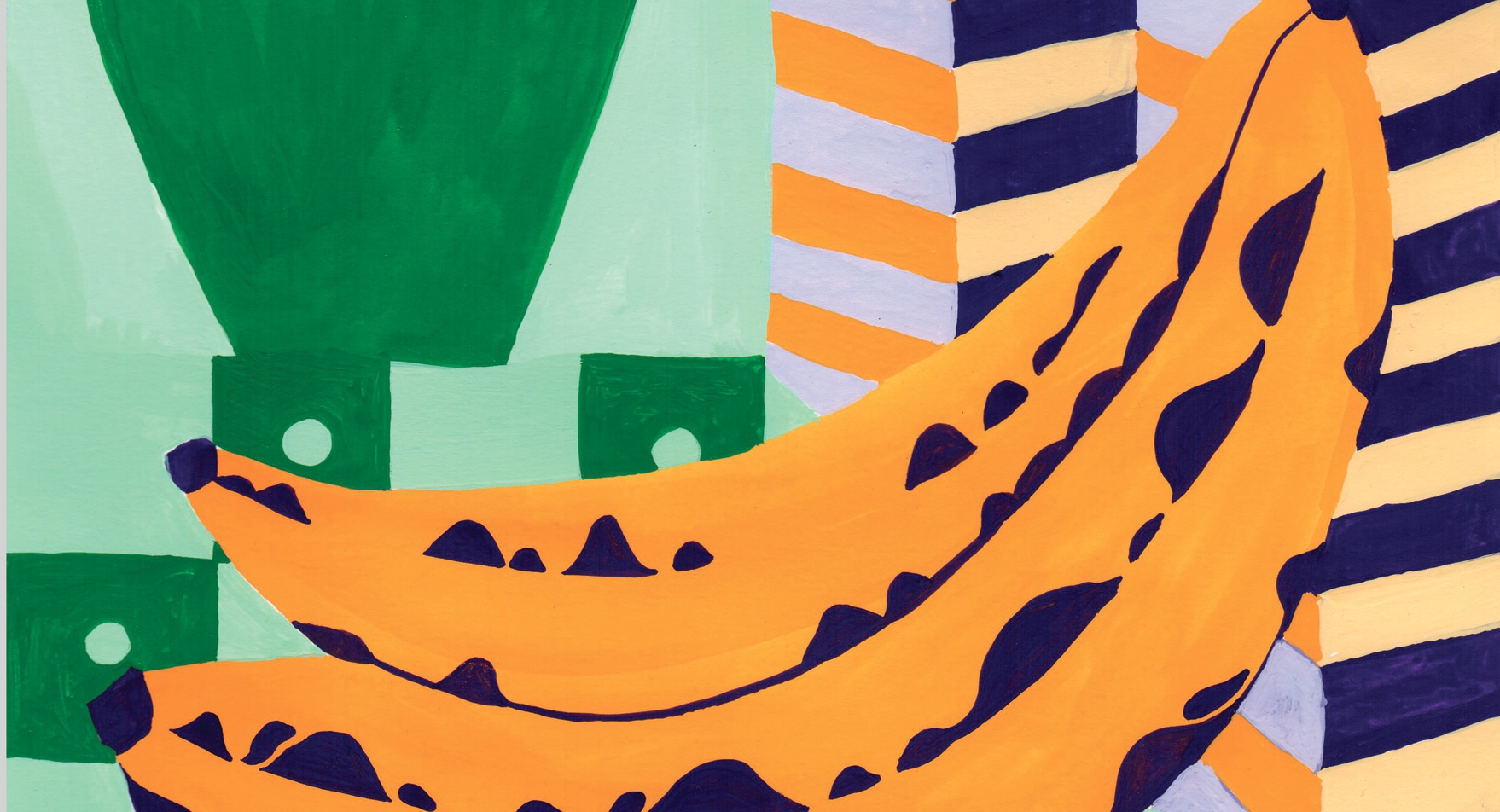 Summer du Plessis est illustratrice, et s’intéresse de très près à la relation image et texte, aux techniques d’impression et à l’objet du livre, principalement sous la forme du fanzine. Elle s’amuse aussi des textures et des nombreuses techniques qui lui sont offertes, impression riso, sérigraphie, crayons, gouache qui lui permettent de disséminer ses couleurs vives, qui font sa marque de fabrique.Elle aime ce qui est brillant, mais brisé, à l’intérieur, à l’image de la vie de Frida Kahlo, une grande inspiration pour l’artiste. On sent aussi parfois un gout pour Matisse et son tableau Intérieur aux aubergines que l’on retrouve dans ses scènes déconstruites aux motifs multiples, qui nous font parfois perdre tout sens des perspectives.
