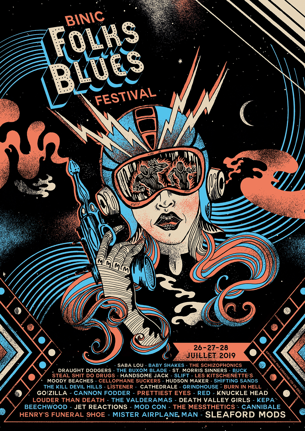 Saba Lou / Baby Shakes / The Schizophonics / Draught Dodgers / The Buxom Blade / St. Morris Sinners / Buck / Steal Shit Do Drugs / Handsome Jack / SLIFT / Les Kitschenette’s / Moody Beaches / Cellophane Suckers / Hudson Maker / Shifting Sands / The Kill Devil Hills / listener / CATHEDRALE / Grindhouse / Burn In Hell / Go!Zilla / Cannon Fodder / Prettiest Eyes / Olivier Red / Knuckle Head / Louder Than Death (King Khan + MAGNETIX) / The Valderamas / Death Valley Girls / Kēpa / Beechwood NYC / Jet Reactions / MOD CON / Cannibale / Henry’s Funeral Shoe / Mr. Airplane Man / Sleaford Mods / ET Explore Me / Guadal Tejaz / Civic