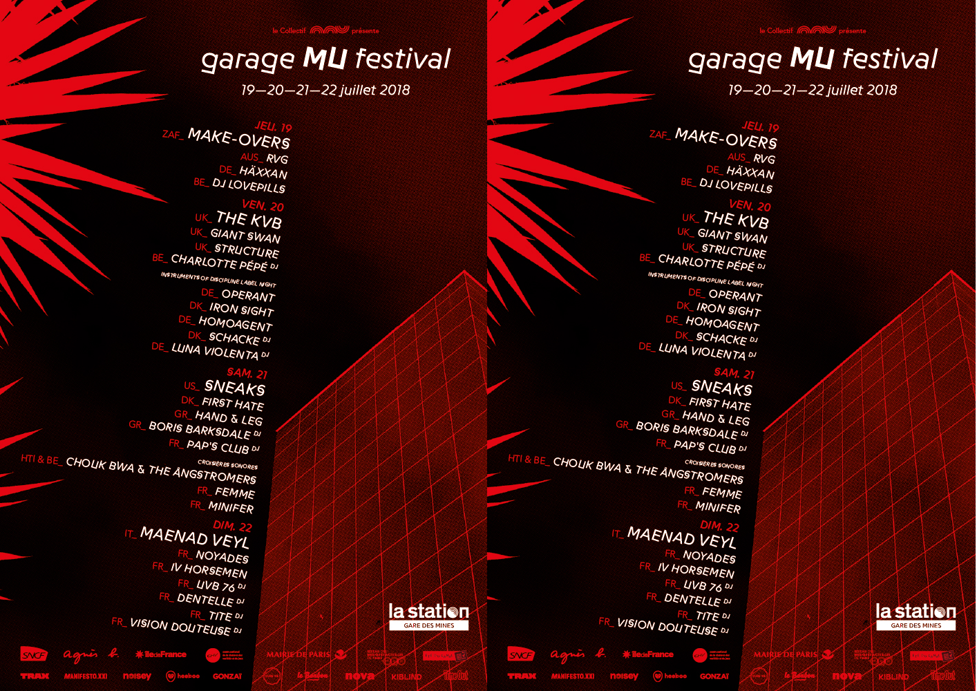 Tant mieux pour nous, La Station – Gare des Mines existe. Et avec elle existe également une assurance tout risque contre le dépérissement de la musique aventureuse, brillante et pourquoi pas dansante. Sa programmation ne cesse de faire des aller-retours sur le mince fil qui relie l’expérimentation à la danse. À ce titre, le Garage Mu Festival, est la quintessence de cette ambition. Rien de très étonnant à cela puisque le festival préexiste à La Station et qu’il a été crée par la même équipe qui tient aujourd’hui les rênes de l’espace albertivillarien.