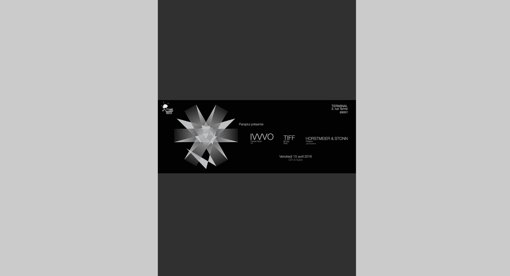 Kiblind a 2×1 places à faire gagner ! Au détour d’un vendredi soir étoilé, le chalan des pentes croix-roussiennes peut se retrouver nez à nez avec une soirée plutôt ragoûtante. Proposée par Paraplui Prod, celle-ci n’est en effet pas dénué de bon goût puisqu’elle invite IVVVO, le boss de Danse Noire, et Tiff, membre de BFDM et soldat du zahef. Les habituels mais chics résidents Horstmeier et Stonn, seront bien sûr de la partie. Le 15 avril au Terminal, à Lyon.